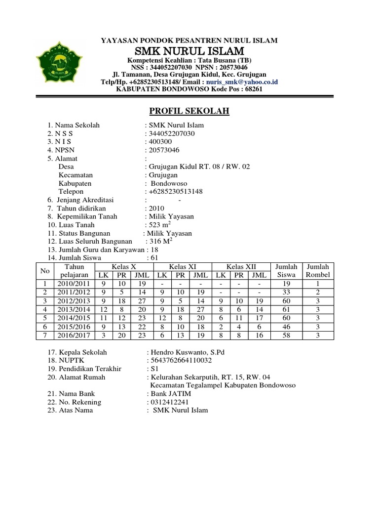 Profil sekolah atau profil lembaga paud biasanya sangat diperlukan ketika lembaga paud menyusun proposal dana bantuan maupun untuk keperluan lainnya. Artikel ini membahas contoh slide presentasi powerpoint yang baik dan menarik. Template memiliki berbagai gambar background, baik berupa foto maupun teks. 71%(7)71% found this document useful (7 votes). Jadi anda tidak perlu khawatir mendownload dan menggunakan file download contoh program kerja kepala sekolah terbaru file guru pgri.