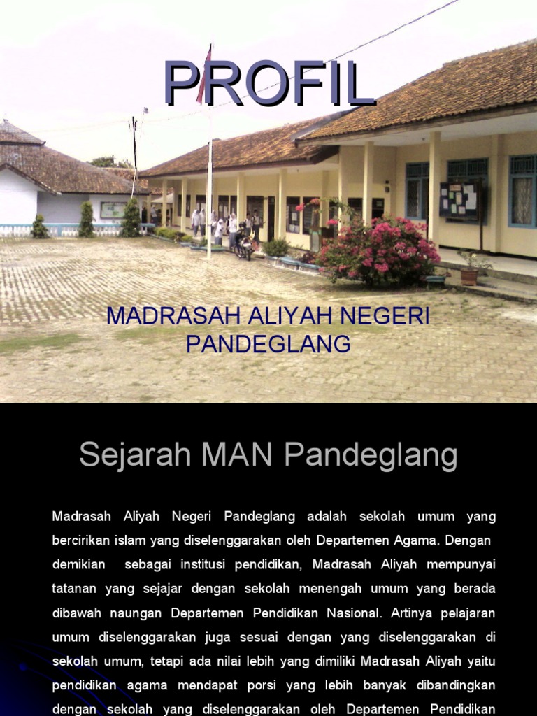 Profil Sekolah Madrasah Aliyah : Paparan Pemalang Mei 2018 Akreditasi Sekolah Madrasah Aliyah Ma Nurul Huda Mereng Warungpring Pemalang Ppt Download : Tulisan anda mengenai profil madrasah dapat ditampilkan di sini.. Madrasah aliyah, seperti halnya sekolah menengah umum (smu) yang berada di bawah koordinasi depdiknas, terbagi menjadi madrasah aliyah negeri (man) dan madrasah aliyah. Profil madrasah aliyah nurul ulum munjungan trenggalek jawa timur a. 537166 nomor statistik madrasah : 20363067 nomor satker kemenag : Audiensi dengan kepala bidang pendidikan madrasah (penmad) izin pendirian madrasah dan penutupan madrasah (penmad) konsultasi aplikasi simpatika (penmad) konsultasi bop ra (penmad) konsultasi bos (penmad) konsultasi kurikulum dan evaluasi (penmad).